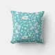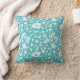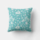 Weiße Blumenmuster mit Schmetterlingen auf türkisfarbenem Hintergrund.