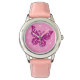 Kinderuhr aus Edelstahl mit rosa Lederarmband