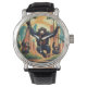 Vintage Männeruhr mit schwarzem Lederarmband