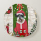 Schnauzer Weihnachten im Freien auf der dekorierten Zuhause mit Weihnachtskranz, Weihnachtsbaum ist eine perfekte Weihnachtsgeschenkidee für Hundefreunde.