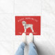 Adorable Weihnachtsmatte mit einem Schnauzer, der eine Weihnachtsmannmütze auf festlichem rotem Hintergrund trägt.