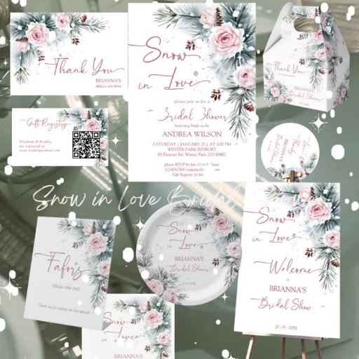 Schnee in der Liebe Winter Brautparty personalisierte Papier-Teller Vorlage, Aquarell rosa im Winter rosa Rosen auf schneebedeckten Pinien Zweige mit Kiefernzapfen Schneeflocken Winter Brautparty mit Monogramm Papier Teller Winter Brautparty gedruckte Servietten personalisiert Tischdekins Brautparty Tischdekor