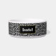 Stilvoller Miezekatzenahrungsmittelteller getan mit Grafiken eines Schwarzweiss-Schneeleopard-Pelzdruckes, um den Teller und ein goldtone umrandeter schwarzer Textbereich, in der Mitte, für den Ihren Namen des Haustieres. Weißer Text erlaubt Ihnen, mit dem Ihrem Namen des Haustieres besonders anzufertigen, denn eine personalisierte Schüssel Ihr katzenartiger Freund kann auf stolz sein. Macht die purrfect Geschenkidee.