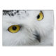 Schöne und geheimnisvolle Augen einer niedlichen Schneeeule. Nahes Foto der Schneeeule mit gelben Augen.