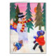 Handgemalte Collage von Kindern, die sich im Schnee amüsieren.