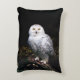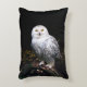 Tierporträtfotografie der majestätischen, schneebedeckten Eule, die auf einem Zweig stehend ist.