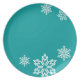 Gestalten Sie Ihren eigenen Farbhintergrund und fügen Sie den Namen Ihres Empfängers, Urlaubsgefühl und mehr hinzu! Schöne, einzigartige weiße Schneeflocken schmücken diesen schönen Teller, perfekt für das Abendessen und als Serviergericht.