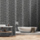 Mit diesem edlen Schneeleopardenprint in Schwarz und Weiß schaffen Sie einen dramatischen Raum.