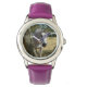 Uhr, Kinderuhr aus Edelstahluhr mit lila Lederarmband