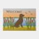 Schokolade Labrador Bird Hund Sunset Doormat für diejenigen, die Liebe Labradors als Vogel Hund Rasse. Schöne Schokolade Labrador Silhouette Design als Jagdhund in der Sonnenuntergang Aussicht. Erstellt von Naomi Ochiai. Sie können Text personalisieren.