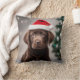 Niedliche Schokolade Labrador Welpe mit einer Weihnachtsmannmütze.