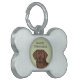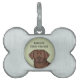 Desteis originelle Cartoon-Illustration einer schokoladenbraunen Farbe Labrador Retriever züchtet Hund's Kopf nah-up. Die Hintergrundfarbe ist grün, und es gibt einen personalisierbaren Textbereich für benutzerdefinierten Text, der sich ideal für den Namen des Tieres und eine Telefonnummer eignet.