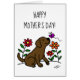 Schokolade Labrador und Green Mother's Day Card. Niedlicher und fröhlicher Labrador Cartoon von Naomi Ochiai aus Japan. Ein bezaubernder Schokolade Labrador Welpe Cartoon im Garten mit bunten Blume und einem Schmetterling. Kawaii Labrador Design für Chocolate Labrador Mama!