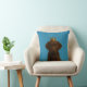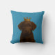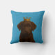 Welpe in Gold Crown Niedliches Kissen aus Ricaso. Ein bezauberndes Schokoladenwelpen auf blauem Hintergrund. Ideal für Hunde- und Tierfreunde.