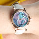 Eine elegante goldene Rose mit einem schönen rosa abgestrafften Design. Diese hübsche Armbanduhr kommt mit einem eleganten weißen Lederband. Das Uhrengesicht hat eine Textnachricht. Text und Fotos sind anpassbar und können leicht personalisiert werden, um Ihren Bedürfnissen gerecht zu werden. Diese einzigartige und schöne Uhr ist das beste Geschenk für Ihre Ehefrau, Freundin und Mutter. Ein tolles Geschenk zum Geburtstag, Hochzeit, Jubiläum, Feiertag, Valentinstag, Muttertag und für dich selbst! Ein wirklich einzigartiges Schmuckstück, das jede Frau liebt und besonders macht!