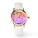 Eine elegante goldene Rose mit einem schönen rosa, rot und blau liquidierten abstrakten Design. Diese hübsche Armbanduhr kommt mit einem eleganten weißen Lederband. Das Uhrengesicht hat eine Textnachricht und 4 Fotos. Text und Fotos sind anpassbar und können leicht personalisiert werden, um Ihren Bedürfnissen gerecht zu werden. Diese einzigartige und schöne Uhr ist das beste Geschenk für Ihre Ehefrau, Freundin und Mutter. Ein tolles Geschenk zum Geburtstag, Hochzeit, Jubiläum, Feiertag, Valentinstag, Muttertag und für dich selbst! Ein wirklich einzigartiges Schmuckstück, das jede Frau liebt und besonders macht!