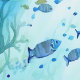 Hübsch unter dem Wasser von Fischschwärmen. Entspannen Sie sich am Strandmotiv und schälen Sie Tapeten.