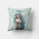 Eine schöne Meerjungfrau mit lang fließendem blauen Haar vor einem Hintergrund von aquamarin mit Muschel und Frondmuster.