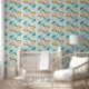 Moderner blauer Hintergrund mit Streifen und Blumen.