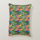 Hübsche grüne, gelbe und rote Papageien in tropischem Blätterdach und Blume werfen Kissen.