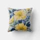 Schöne gelbe und blaue Blumen bedecken dieses Kissen. Hell und fröhlich, mit einem französischen Country-Look.