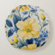 Schöne gelbe und blaue Blumen bedecken dieses runde Kissen. Hell und fröhlich, mit einem französischen Country-Look.