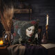 Schöne Gotische Frau mit Thorns und Rose Kissen