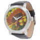Schöne Orangen- und Gelbblütenuhr Armbanduhr