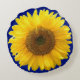 Schöne Sonnenblume auf königsblauen Rundkissen. Man glaubt, dass Sonnenblumen Freude bringen. Ein ideales Geschenk für alle!