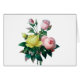 schöne Vintage botanische Illustration von P.J. Redoute. hübsche rosa und gelbe Rosa Blume und grüne Blätter.
