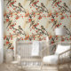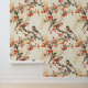 Schöne asiatische Tapete im japanischen Stil mit Vögeln und Reben mit fließenden Ästen und einem rustikalen Hintergrund. Die perfekte Verkleidung, um Ihre Wände in jedem Raum Ihrer Wahl zu wärmen.