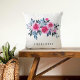 Hübsche und elegante Kissengestaltung mit hellrosa Aquarellfarben, blauem und grauem Blattwerk auf weißem Hintergrund. Text kann geändert werden.