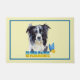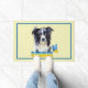 Eine schöne Art für Tierfreunde, ihre Unterstützung für die Ukraine zu zeigen. Hübsche Vordertür Matte Design bietet Aquarellfarben Border Collie Hund mit "Ukraine"-Text und Schmetterling in den blau-gelben Farben ihrer Nationalflagge auf gelbem Hintergrund.
