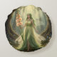 Eine wunderschöne Fee mit einem fließenden, hellgrünen Kleid und Schmuck aus Peridoten mit Peridot Steinen in ihrem langen, hellgrünen Haar und transluzenten Drachenfliegenflügeln mit einem Gladiolus Spaziergänge in einem zauberhaften Wald umgeben von rosa und blauen Blumen und rebenbedeckten Bäumen.