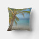 Ein schönes Strandkissen aus Belize mit einer Palme, die über dem Sand hängt und im Hintergrund das Korallenriff. Sie können das Hintergrundbild ändern und auch den Text bearbeiten. Image ©copyright Jo Rymell
