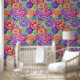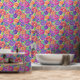 Das nahtlose Muster zeichnet sich durch eine lebendige und farbenfrohe Palette an stilisierten Blume aus. Das Design umfasst eine Vielzahl von Blüten in lila, rosa, gelben und blauen Farbtönen, ergänzt durch grünes Blattwerk. Jede Blume ist aufwändig in verschiedenen Farbtönen detailliert, wodurch das Muster tiefer und größer wird. Die Blume sind dicht gepackt, wodurch ein durchgängiges Design ohne wiederholte Linien entsteht, was es ideal für Textilien oder Tapeten macht. Die helle Farbpalette und die aufwändigen Details machen dieses Muster optisch ansprechend und lebendig.