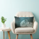 Ein Kissen mit einem Foto von einem wunderschönen furry flauschig grauen Wolf. Im Hintergrund ist ein dunkler Wald mit Bäumen. Magisches mystisches Flair.