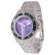 Uhr, Kinderuhr aus Edelstahluhr mit lila Lederarmband