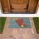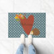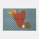 Ein schöner Igel vor einem mit Blume geschmückten Herzstück. Das Wort Willkommen auf der anderen Seite. Der Hintergrund sind weiße Polka-Punkte über blau.