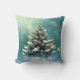 Schöner Weihnachtsbaum mit Schnee und goldenen Lic Kissen