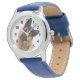 Kinderuhr aus Edelstahl mit blauem Lederarmband