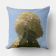 Herrliche nahe Aussicht auf die Spitze der Limonen Hydrangea-Blume mit grünen Blätter, die auf einen wunderschönen blauen Himmel zeigen. BACK of Kissen ist eine hellblaue Hintergrundfarbe. Klicken Sie auf Anpassen, wenn Sie Ihren Text personalisieren möchten. Foto von unserem Hydrangea-Strauß aufgenommen. Original Fotografie © 2012 TamiraZDesign.