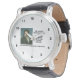 Uhr, Vintage Männeruhr mit schwarzem Lederarmband