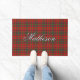 Willkommene Matte der eleganten und interessanten Tür, die den wunderbaren schottischen Clan Matheson Tartan kariert, mit individuellem Namen kennzeichnet.