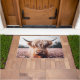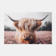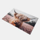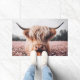Eine Türmatte mit einer niedlichen Hochlandkuh, stehend in einem Feld von rot-rosa Blume.