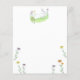 Whimsikale und fröhliche Osterfrühlingsillustrierung auf weißem Papier für einen Brief. Schreiben Sie einen Brief an einen Freund, eine Tochter, eine Tante, Großmutter, Mutter, Enkelin. Dieser weiße Osterhase, der auf einem weißen Papier durch die Frühlingswiese geht, ist ein schönes Design für einen Mutterbrief oder einen Vaterbrief.
