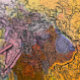 Ein ungewöhnliches und farbenfrohes abstraktes Kunstdesign eines Schafes.