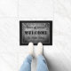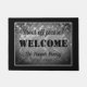 Schuhe der bitte Stahlplatten-Zeichenfamilien-Willkommensfußmatte. Kundenspezifische Türmatte für Freunde, Familien, Nachbarn, Geschäft, Firma, Geschäft, Speicher, Büro, Jungvermählten, Herr und Frau couple etc. addieren Ihre eigene Spaß-Willkommensschildmitteilung, Adresse, Hausnummer, Familienname, stellten Jahrdatum, Monogramm, Familiennamen oder humorvolles Zitat her. Niedliche Geschenkidee für neues Zuhause oder Housewarming. Stilvolle Typografieschablone mit hintergrund-Beschaffenheitsbild der grauen Bauarbeit Metallplatten. Personalizable Fußmattenzeichen mit Grenze. Stellen Sie Ihre eigene lustige Eintrittsmatte/-wolldecke für Haustür, Eingang oder Halle her. Kundengerechte Wohngestaltung/Dekorationen für Ihr Haus. Neuheits-Wohngestaltung-Geschenkideen. Verfügbar in kleinem und in großem/in großem.