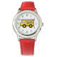 Lernen Sie die Zeit mit diesen lustigen Kindern gelben Schulbus Uhr, fügen Sie einen Namen, wenn Sie wählen.