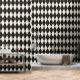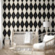Dieses skurrile Harlequin-Muster hat eine subtile Schattierung, die ihm ein Gefühl Vintager Opulenz gibt.